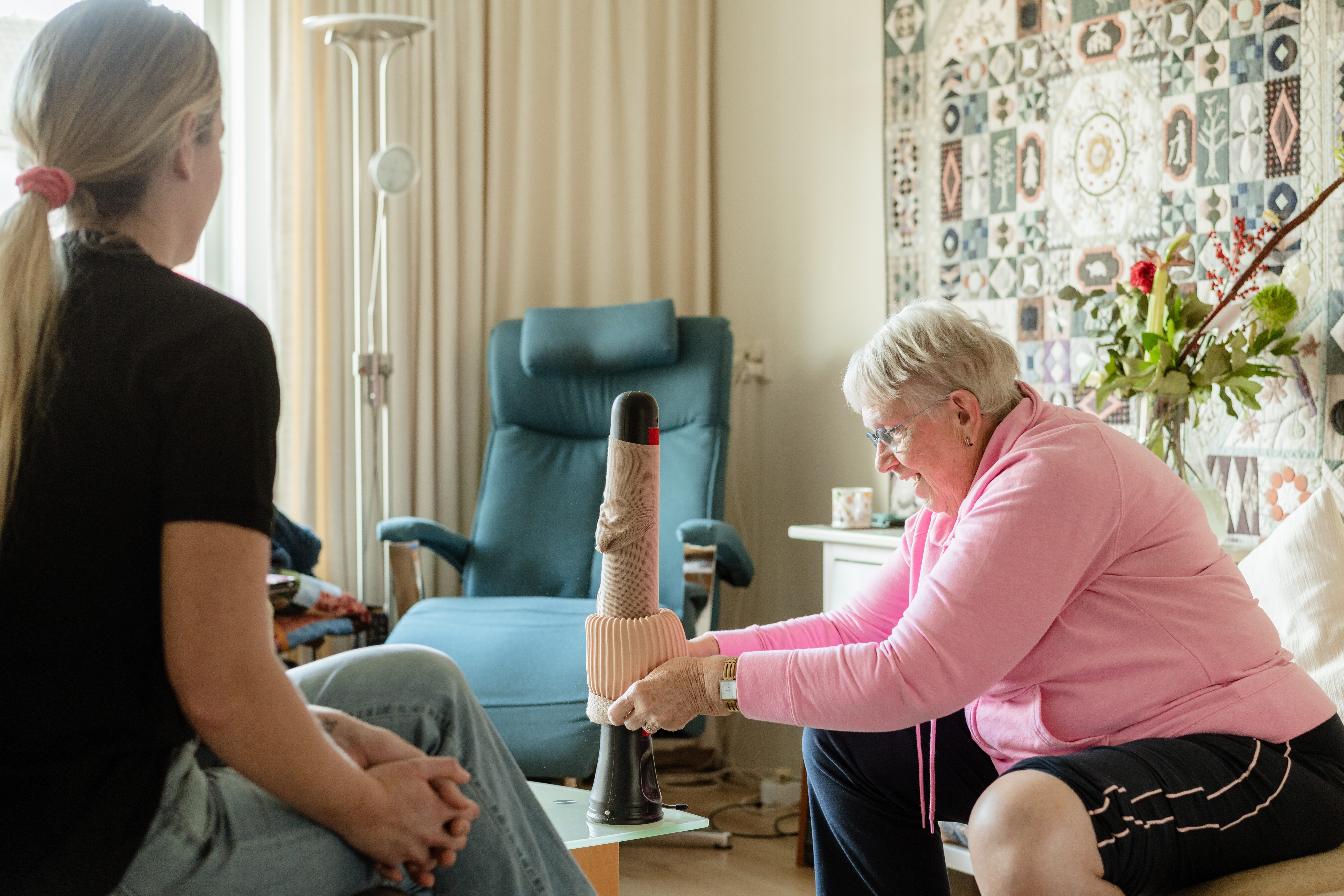 Cliënten zelf steunkousen laten aantrekken: wat levert het op?