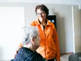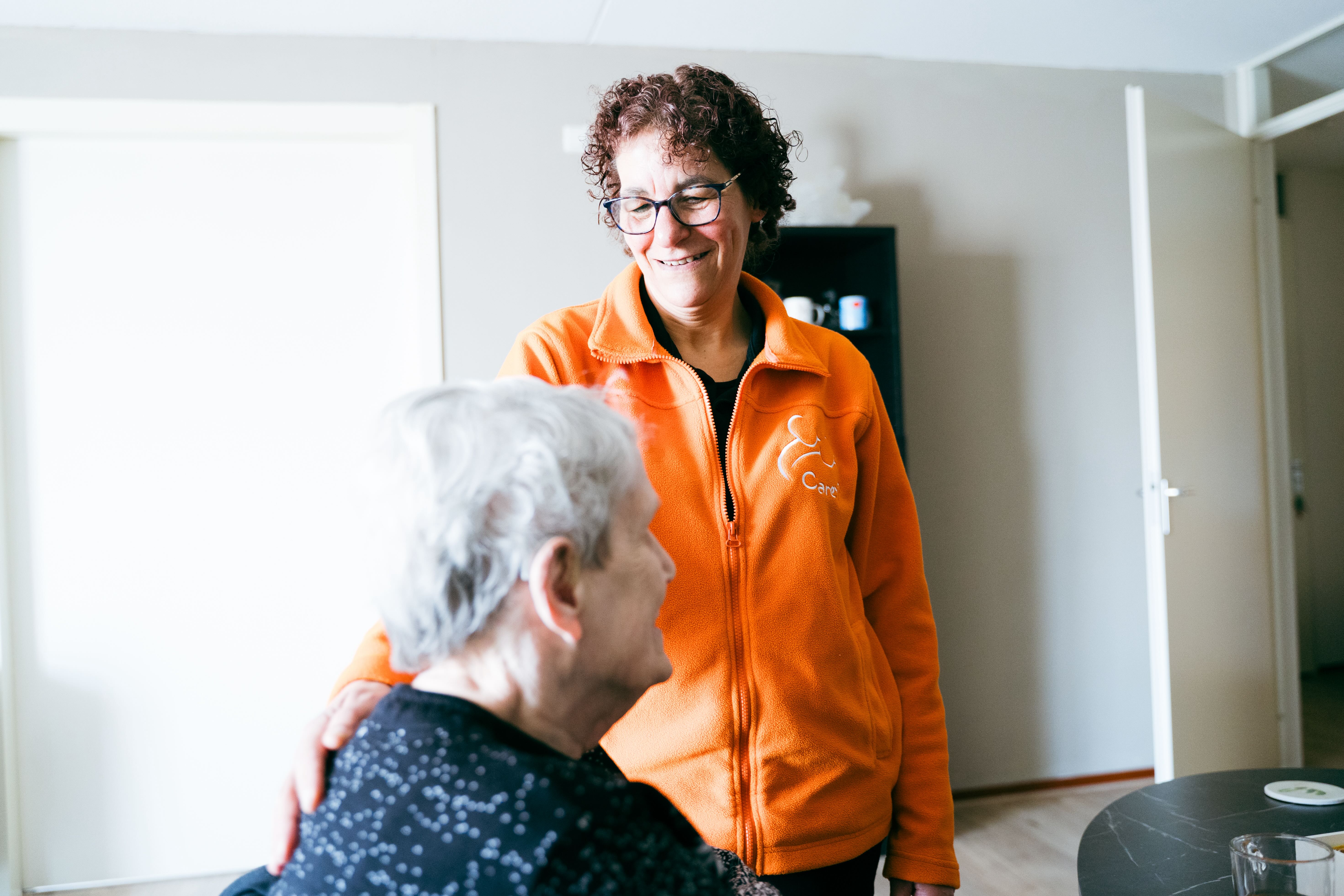 Op de vraag wat ze het mooiste vindt aan haar werk, noemt leefondersteuner Stella dan ook de dankbaarheid van de mensen. “Als ik een avonddienst heb om acht uur en ik heb om half acht niks meer te doen, dan ga ik alvast naar mevrouw Polderman toe. Je hoort ook wel eens dat cliënten om je vragen. Ik woon zelf ook in deze buurt en voel mij praktisch buren met veel cliënten. Dus als ik dan bij iemand binnenkom, dan zeg ik ‘Hé buurvrouw’. Dan stralen ze helemaal; dat is zo leuk om te zien.”