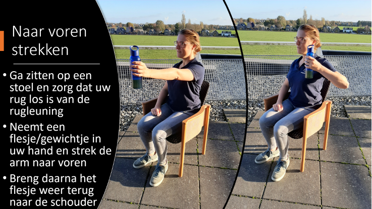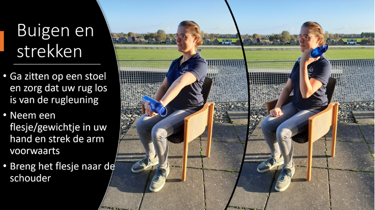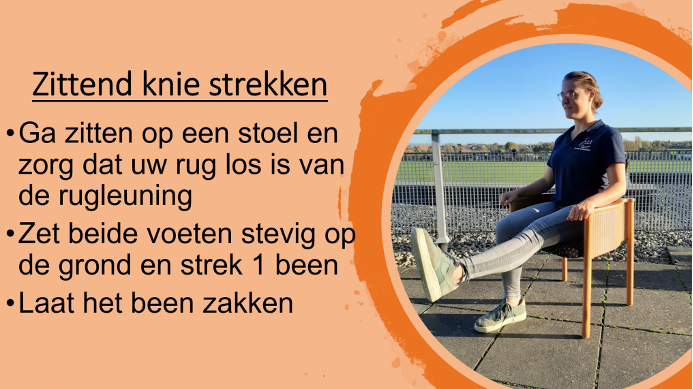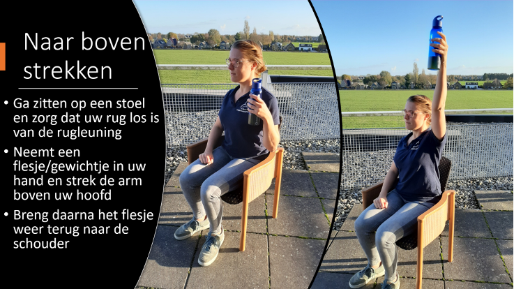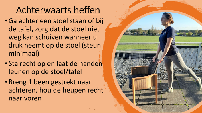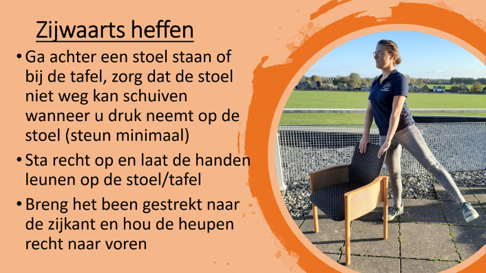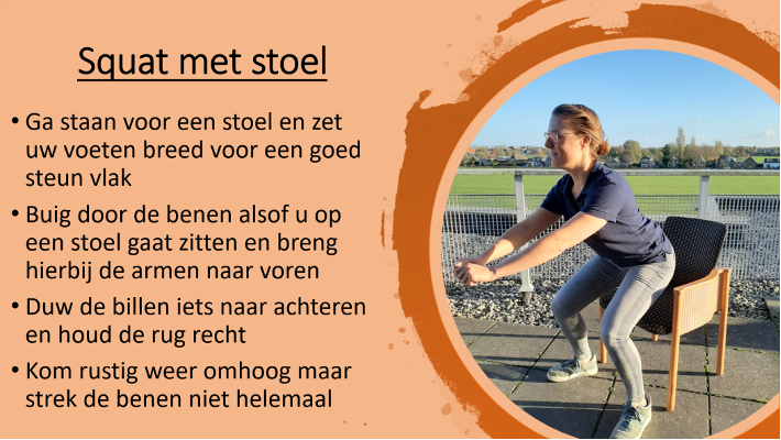 Om te laten zien dat bewegen áltijd kan, ook in uw situatie, geven we hieronder een aantal voorbeelden van kracht- en balansoefeningen die u thuis kunt doen.