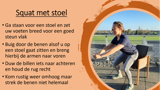 Wanneer u start met trainen kunt u elke oefeningen 30 seconden uitvoeren. Wanneer u het gevoel heeft dat de oefeningen goed gaan kunt u verder uitbreiden naar 1 minuut per oefening en zo verder. U kunt ook kiezen voor een aantal herhalingen per oefeningen, start dan bijvoorbeeld met 10 herhalingen en breid dit steeds met +5 uit. Klik op de afbeeldingen om de afbeelding te vergroten.