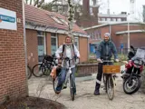 We stappen op de fiets richting de Plantage. Daar helpt Dennis, onder begeleiding van Remi, met het wassen, aankleden en verzorgen van een cliënt.